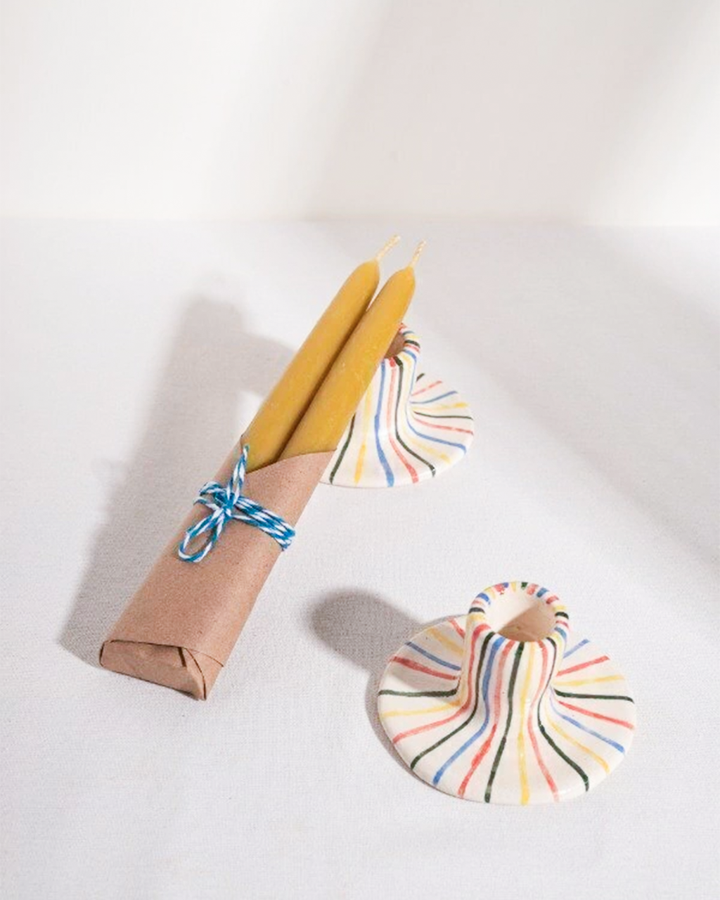 Cada vela es única debido a su proceso de elaboración artesanal por inmersión reiterada. Con el tiempo, pueden desarrollar una fina capa blanquecina, signo de su pureza, que se puede limpiar suavemente con un paño.