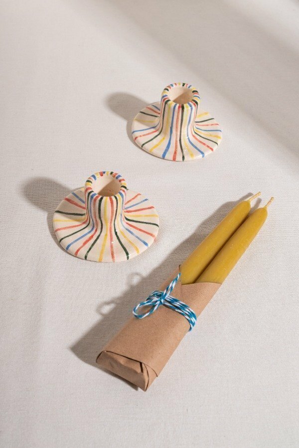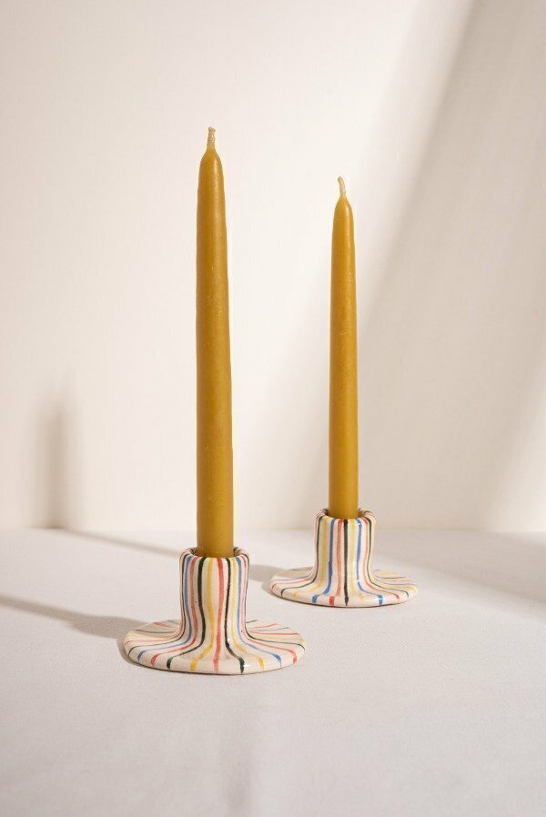 Par de velas artesanales hechas 100% de cera de abeja pura, sin químicos ni aditivos.